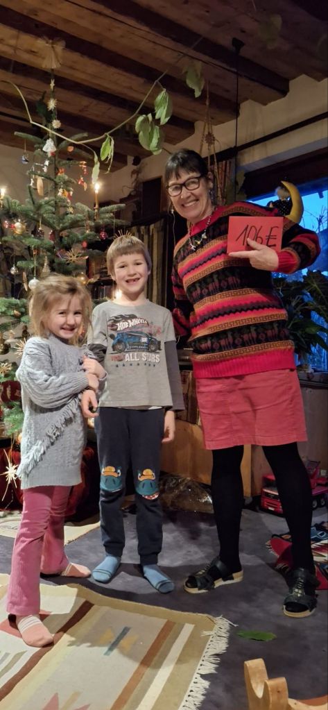 Aber es war nicht umsonst: Sie hatten 106 € gesammelt, die sie stolz unterm Christbaum überreichten. Das Geld und die Fotos aus Reith kommt 100%ig den Kindern in Peru zu Gute!